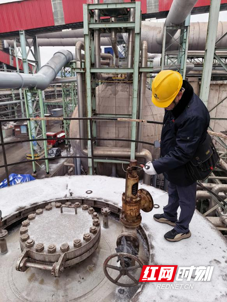 时值寒冬,娄底分院检验人员做好专业防护后,对蒸汽储罐的压力监测装置精度、泄压阀工况及罐体焊接质量进行严格核查,特别将设备老化、压力波动及焊接裂纹等作为重点排查内容,并针对潜在隐患,现场与相关负责人详细沟通,帮助制定整改方案和防控措施,形成“检验-指导-整改”闭环管理,最大限度降低停产损失,实现“服务不添乱、监管有温度”。